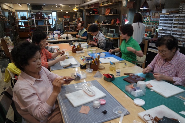 가죽공방에서 카드지갑을 만들어 손주들에게 선물할 수 있는 체험학습을 통해 새로운 경험과 즐거움을 느낄 수 있는 뜻깊은 시간이 되었습니다.