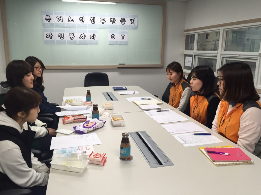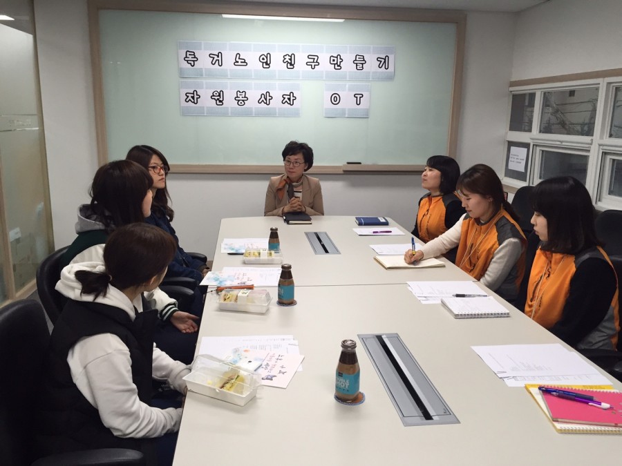 복지2과에서는 독거노인에게 믿고 의지할 수 있는 1명 이상의 절친한 친구(confidant)를 만들어주고 독거노인의 우울증 경감과 고독사 및 자살 예방을 위한 상호돌봄체계를 구축하기 위한 독거노인친구만들기사업을 진행하고 있습니다. 독거노인친구만들기사업의 원활한 운영을 위하여 자원봉사자를 모집하였으며 오리엔테이션을 통해 자원봉사자의 사업에 대한 이해를 증진시키고 역할과 역할에 부합하는 과업을 수행할 수 있도록 교류하고 격려와 지지하는 시간을 가졌습니다.