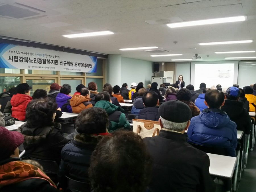 2016년 1월 21일에는 2015년 12월 17일 ~ 2016년 1월 20일까지 신규가입을 한 어르신을 대상으로 오리엔테이션을 실시하였습니다.