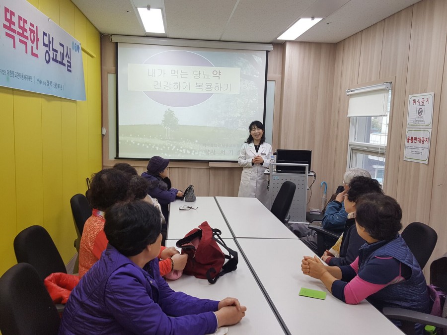 건강증진사업에서는 어르신들의 당뇨병 자기관리 능력향상을 위한 소집단프로그램을 총 6회기에 걸쳐서 진행하였습니다, 참여자의 당뇨검사, 당뇨이론교육, 약물교육, 운동교육, 식사교육, 웃음치료 등의 내용으로 프로그램을 구성하여 당뇨질환을 보유하고 있는 어르신들이 스스로 관리할수 있는 방법을 터득할 수 있는 기회가 되었습니다.