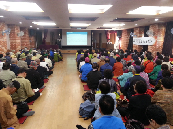 본 복지관 노인사회활동지원사업에서는 거동불편노인돌봄사업,홀몸노인돌보미사업참여자들252명을 대상으로 활동의 질을 향상시키고자 금일 2015년 4월 24일(금)에 활동교육을진행하였습니다.