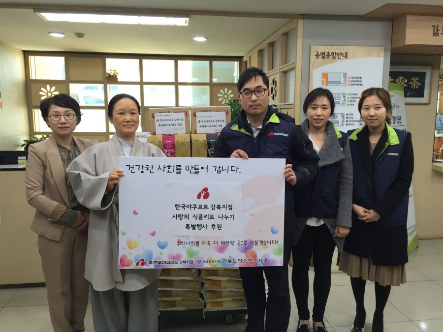 후원사업에서는 한국야쿠르트 강북지점의 후원으로 강북구 내 저소득 어르신들을 대상으로