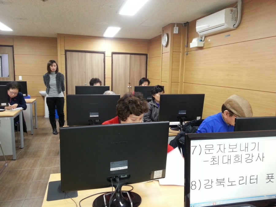 본 복지관 사회교육사업에서는 삼성 SDS, 사회복지공동모금회, 독거노인종합지원센터에서 지원하는 어르신 정보격차 해소를 위한 IT지원사업 『세상과 사랑을 잇(IT)는 노리터(老里攄)』 사업을 진행하고 있습니다.