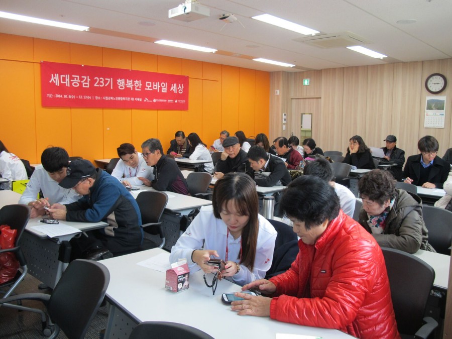 본 복지관에서는 SK Telecom, 한국노인종합복지관협회에서 지원하는 SK Telecom 23기 휴대폰활용교육을 진행하고 있습니다. Sunny봉사단의 1:1매칭 교육을 진행하고 있으므로 참여 어르신께서 스마트폰에 대해 쉽게 이해할 수 있어 매우 높은 만족감을 형성하고 있습니다.