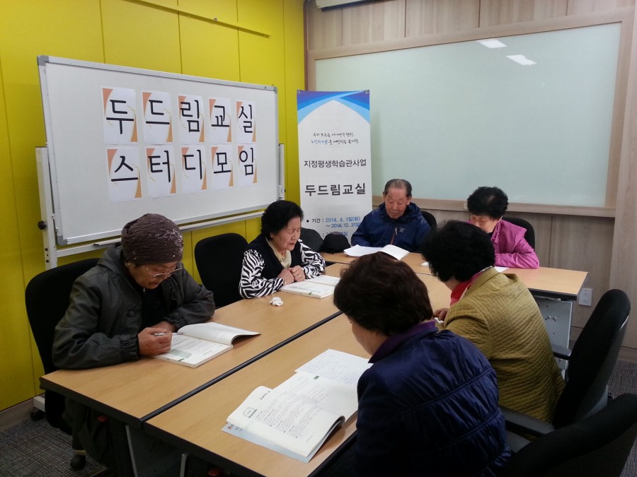 본 복지관에서는 서울특별시 교육청에서 지원하는 지정평생학습관사업(두드림 교실)을 운영하고 있습니다. 정규 수업 외에도 스터디 모임을 통한 자율학습을 함으로써 학습의 욕구를 충족하고 있으므로 매우 높은 만족감을 형성하고 있습니다.