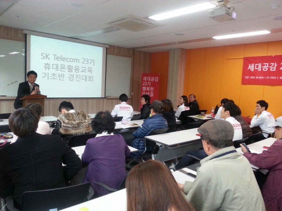 본 복지관에서는 SK Telecom, 한국노인종합복지관협회에서 지원하는 휴대폰활용교육을 진행하고 있습니다. 5주동안 Sunny봉사단을 통해 1:1매칭 교육을 하였으며, 경진대회를 실시하였습니다. 성적 우수자 1위~3위까지 상품 수여 및 참여자 모두에게 기념품을 증정하였으므로 성취감과 매우 높은 만족감을 형성할 수 있었습니다.
