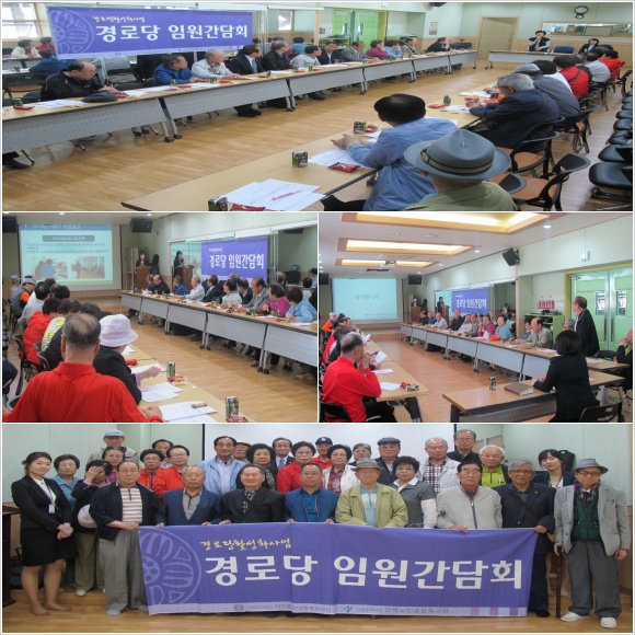 바쁜 일정에도 참석한 경로당 임원진들께 감사드리며, 간담회를 통하여 논의된 의견을 최대한 반영하여 경로당활성화 사업의 발전을 위하여 노력하겠습니다.