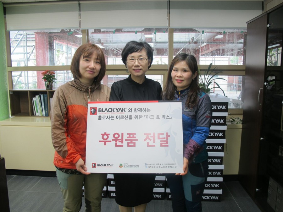 노인돌봄기본서비스는 이번 어버이날을 맞이하여 블랙야크와 함께 강북구내 독거어르신께 야크 효 박스를 전달하였습니다. 야크 효 박스는 식품키트로서 박스 구성물로는 라면 소면 고등어 황도 양말 미역 소금 설탕과 함께 어버이날을 기념하기 위한 카네이션이 들어있습니다. 다시한번 블랙야크 임직원분들께서 지역사회 노인복지 발전을 위한 소중한 후원물품을 보내주신데 대한 감사하다는 말씀 전해드립니다.