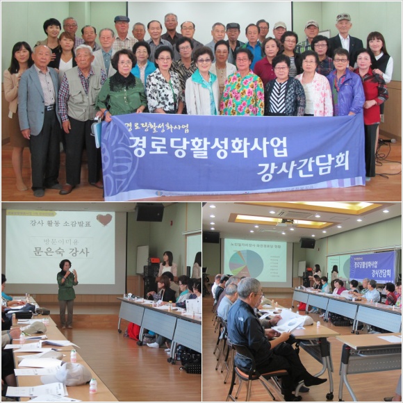 이번 간담회 에서는 경로당에 파견되어 활동하고 있는 강사들의 활동소감과 강사들에게 교육을 받고 있는 경로당 수강생들의 활동소감을 나누는 시간을 갖을수 있는 시간이 되어 어느때보다 의미있는 간담회였습니다.