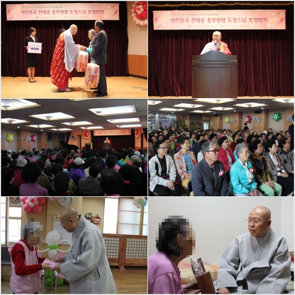 이날 시립강북노인종합복지관에서는 지역사회 후원문화를 조성하고, 저소득 어르신들 108가정의 경제적 지원을 위해 후원품(이불) 전달식이 진행되었으며, 이어서 대한불교 천태종 총무원장 도정스님 초청법회가 진행되었습니다.