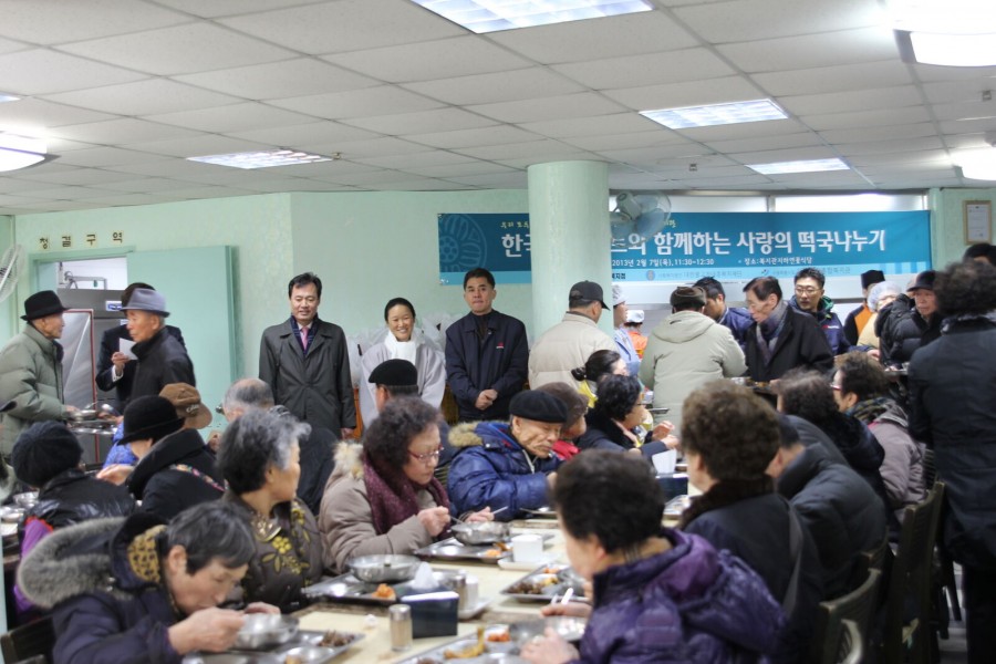 지역협력사업에서는 한국야쿠르트 강북지점 석정석 지점장님 이하 임직원 분들의 후원으로 복지관을 이용하시는 어르신들을 대상으로 무료중식행사(떡국나누기)를 진행하였습니다.