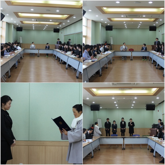시립강북노인종합복지관에서는 매월 직원 월례회의를 진행하고 있습니다.이번 직원 월례회의에서는 관장님 인사말, 신입직원 임명장 수여 및 소감발표, 직원 상조회 등 순으로 진행되었습니다. 감사합니다. ▣ 일 시 : 2013년 2월 7일(목), 09:00~09:30▣ 장 소 : 3층 정진실▣ 대 상 : 본 복지관 전직원
