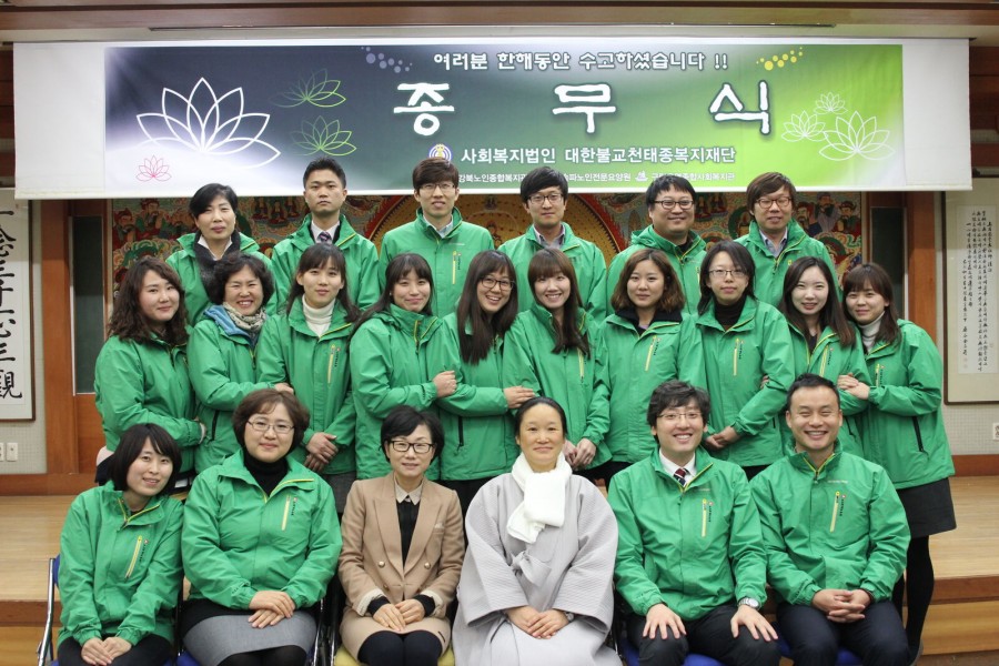 시립강북노인종합복지관에서는 법인 산하시설인 우면종합사회복지관, 송파노인전문요양원과 함께 관문사에서 "2012년 종무식"에 참석하였습니다.종무식에서는 우면종합사회복지관 윤금선 부장의 진행으로 "관문사 주지스님의 인사말"을 시작으로 종무사, 격려사, 직원표창, 2012년 활동상, 사진 촬영 등으로 행사가 진행되었습니다. 감사합니다▣ 일시 : 2012년 12월 31일(월), 16:00~17:30▣ 장소 : 관문사