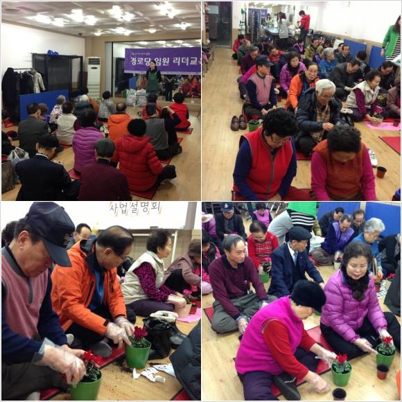 시립강북노인종합복지관 경로당활성화사업에서는 경로당 임원들의 정서적 순화를 돕기 위해 4차 임원교육(원예치료)을 진행하였습니다.
