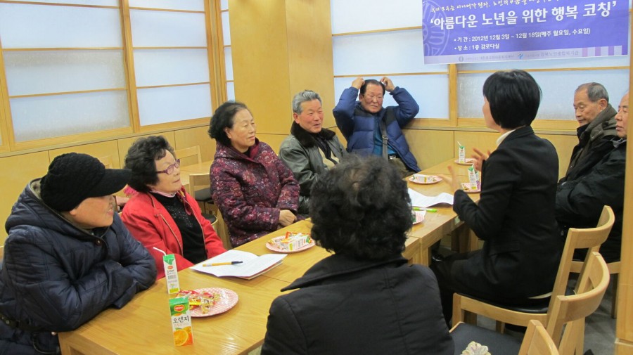 시립강북노인종합복지관에서는 복지관 어르신들을 대상으로 건강한 노후생활을 지원하고자 우울증 치유를 위해 "아름다운 노년을 위한 행복 코칭" 이란 주제로 프로그램을 진행하고 있습니다.