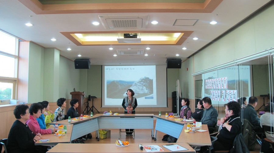 시립강북노인종합복지관에서는 북한산둘레길지킴이 참여자 13명을 대상으로 간담회 및 숲 해설, 자연물을 활용한 놀이방법에 대한 교육을 진행하였습니다. 이를 통해 북한산둘레길지킴이 운영을 위한 전반적인 사항을 검토하고 의견을 조율할 수 있었으며 참여자들의 역량을 강화하는 시간이 되었습니다.