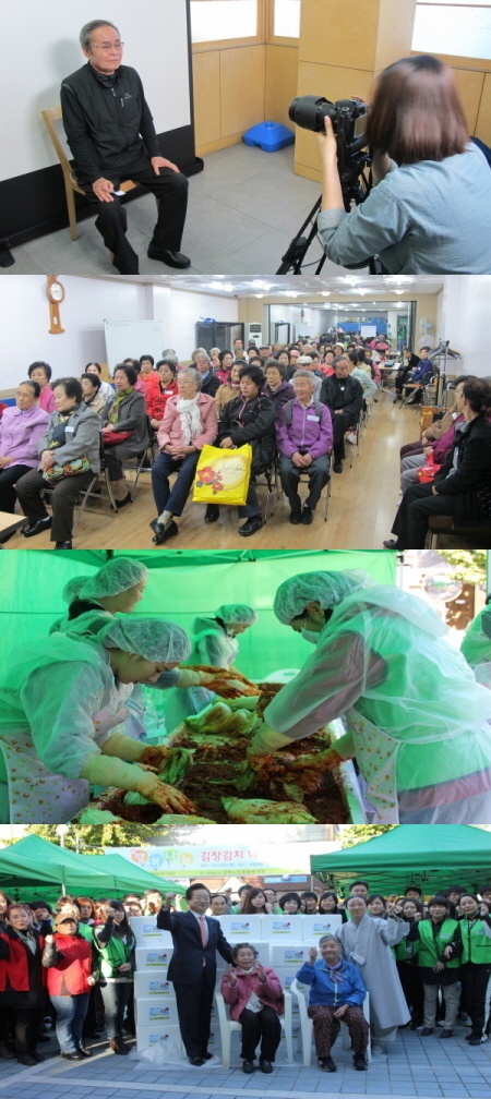 시립강북노인종합복지관 독거노인맞춤복지서비스사업에서는 독거노인사랑잇기사업 마음잇는봉사를 노인돌봄기본서비스 이용 어르신 100분을 모시고 김장김치 나누기 및 장수사진 촬영을 진행하였습니다.