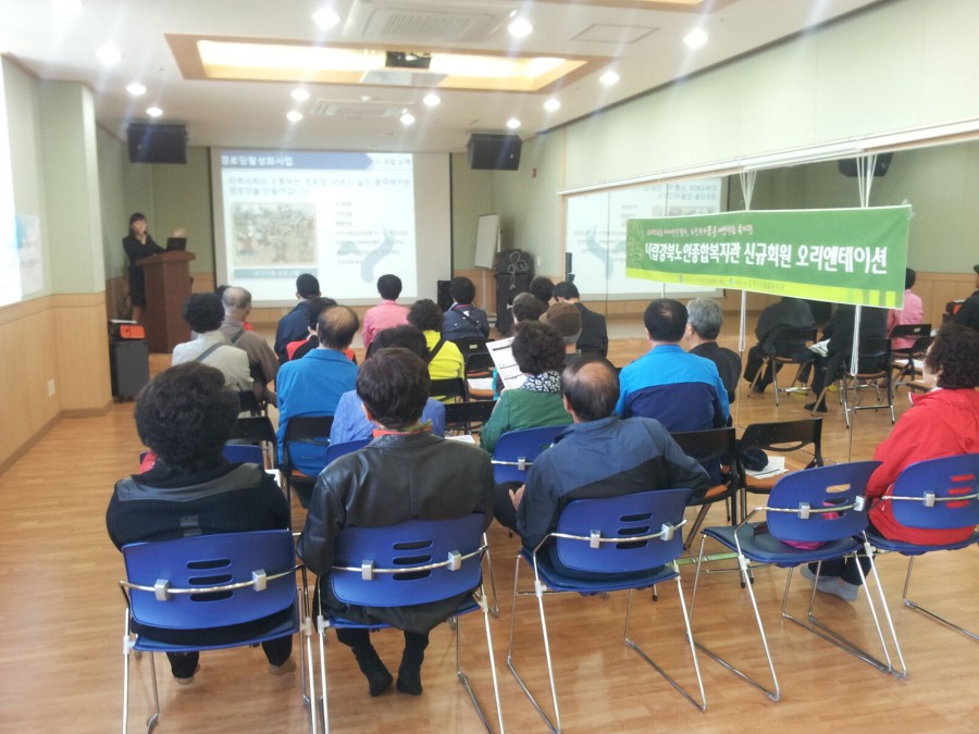 금일 10월 15일 ~ 10월 26일까지 신규 가입을 한 어르신을 대상으로 오리엔테이션을 실시하였습니다.