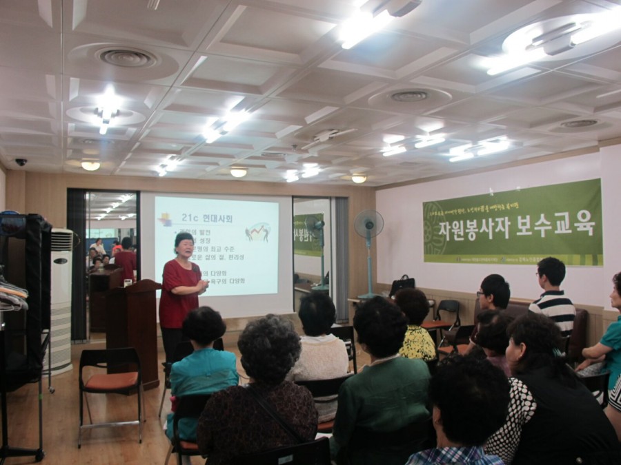자원봉사자들의 활동을 지지 및 격려하고 활동의 전문성을 부여하기 위해 역량강화교육을 진행하였습니다. (사)한국자원봉사문화 소속 이남숙 강사의 강의로 자원봉사에 대한 동기부여가 강화되고 자원봉사자들간의 교류의 장이 되는 기회가 되었습니다.본 기관에 관심을 갖고 활동해주신 자원봉사자들께 진심으로 감사드립니다.1. 일시 : 2012. 6. 29(금), 15:00~17:00 2. 장소 : 지하 탁구실