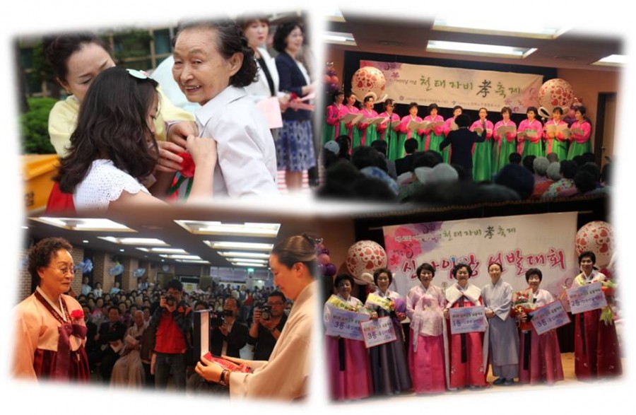시립강북노인종합복지관에서는 5월 8일(화) 어버이날을 기념하여 우리의 전통미덕인 경로효친 사상을 계승, 발전시켜 나가고자 제40회 어버이날 기념행사 “천태자비 孝 축제”를 1,500여명의 어르신들이 참석한 가운데 성황리에 개최하였습니다. 이날 행사에서는 인수동어린이집, 우이초등학교 학생들이 직접 카네이션을 달아드리고, 장한어버이상을 시상하는 의미 있는 기념식, 갈비탕과 잔치음식으로 푸짐한 무료중식을 제공해드렸습니다. 이어서 제2회 신사임당 선발대회를 통해 어르신 5명이 도전실버벨, 끝말잇기, 레크리에이션, 장기자랑 등에서 열띤 경연을 선보여 지덕체를 겸비한 강북신사임당을 선발하였고, 복지관 홍보대사로 활동하는 영예를 얻게 되었습니다. 또한 초청가수, 밸리댄스, 마술쇼 등 다채로운 공연이 펼쳐져 효 축제의 흥겨움을 더했고, 부대행사로 캐리커처, 연꽃컵등만들기, 네일아트, 메이크업, 추억의 포토존·체험존, 사랑의 국수나누기 등 다양한 이벤트가 진행되어 어르신들의 즐거움은 배가 되었습니다. 어르신들에게 함박웃음을 안겨준 이번 행사를 시립강북노인종합복지관은 앞으로도 더 많은 지역주민과 함께할 수 있도록 노력하겠습니다.
