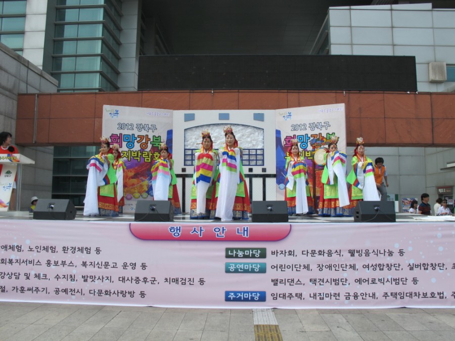 강북구민들이 강북구 지역사회복지 자원과 복지서비스를 체험하고, 지역사회복지 네트워크 지원체계 활성화를 도모하고자 강북구지역사회복지협의체 주최로 2012 희망강북 복지박람회를 실시하였습니다.