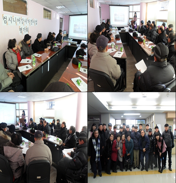 시립강북노인종합복지관 복지2과 경로당지원팀에서는 특화사업으로 컴시니어강사파견사업 평가회가 본 복지관 1층 회의실에서 진행되었습니다. 이번 회의에서는 2011년 사업보고, 2012년 계획, 안건 및 토의, 공지사항으로 진행되었습니다. 한 해를 마무리하고, 내년사업계획을 세우고자 진행되었던 평가회에서는 강사님들께서 다양한 의견들을 주셨습니다. 주신 의견을 토대로 내년사업에 반영하여 좀 더 질 높은 컴퓨터 교육이 될 수 있도록 노력하겠습니다. 추운 날씨에도 참석해 주신 23명 강사님들에게 감사드립니다.