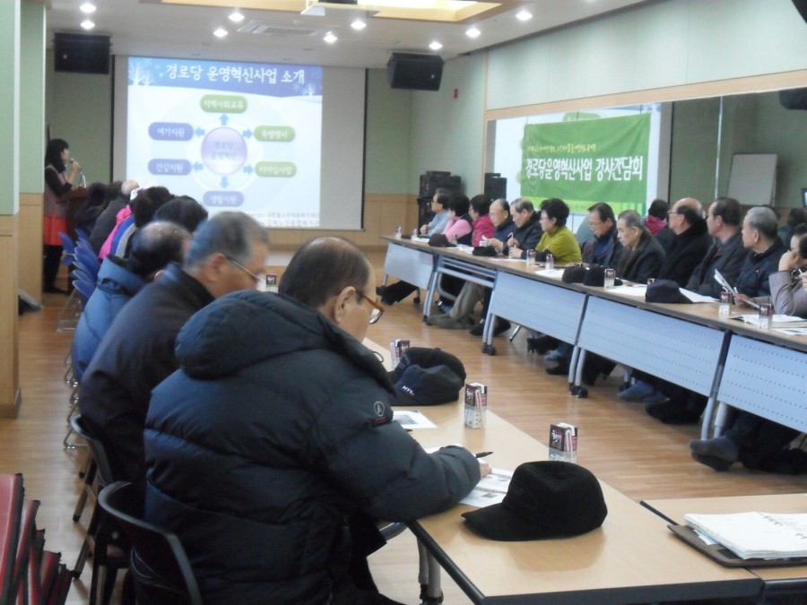 시립강북노인종합복지관 복지2과 경로당지원팀에서는 경로당으로 파견되고 있는 강사들을 모시고 하반기 간담회를 진행했습니다. 하반기 강사간담회를 통해서 2011년 파견강사 활동 소개, 활동점검 및 의견개진을 하는 시간을 갖았습니다. 이를 통해서 경로당 강사 파견사업과 관련하여 2012년 경로당 사업방향에 대해서 나눌 수 있는 좋은 시간이 되었습니다. 경로당 강사간담회에서 나온 의견을 반영하여 2012년에는 경로당 파견강사들이 더 나은 활동을 할 수 있도록 노력하겠습니다.