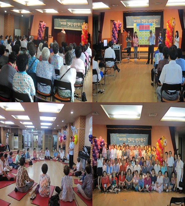 시립강북노인종합복지관 복지2과 경로당지원팀에서는 지역사회교류사업의 일환으로 제9회 경로당 열린학교를 진행했습니다. 집중관리 경로당 30개소 회원들을 모시고 본 복지관 3층 금강홀에서 진행되었습니다. 본 열린학교 프로그램에는 입학식, 건강체조, 웃음치료, 도전50곡, 실버골든벨, 체험부스 등 다양한 프로그램들이 진행되었습니다.