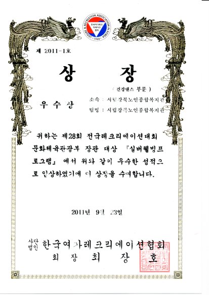 제 28회 전국레크리에이션대회 실버웰빙프로그램 경진대회에 참석하여