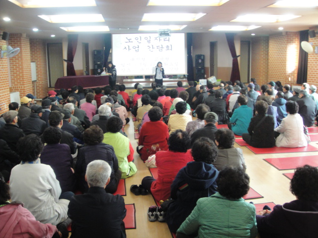 이번 노인일자리사업 3월 간담회는 노인일자리 유형별로 실시되어 교육형(노인전문강사파견사업), 복지형(홀몸노인안전지킴이파견사업), 노인학대예방지킴이사업, 공익형(안전관리요원파견사업, 급식도우미파견사업), 인력파견형(실버인턴사원파견사업)의 참여자들에게 공지사항을 전달하고 건의사항 수렴시간으로 진행되었습니다.
