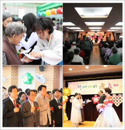 이날 행사에서는 어린이집, 중학교 학생들이 직접 카네이션을 달아드리고, 장한어버이상을 시상하는 의미 있는 기념식, 소고기국밥과 잔치음식으로 푸짐한 무료중식을 제공해드렸습니다. 특히 장한어버이상 시상에는 메이저리그를 거쳐 한국으로 돌아온 후 다시 국제적인 투수로 거듭나고 있는 봉중근(LG) 야구선수의 아버님이 선정되어 사람들의 주목을 끌었습니다.