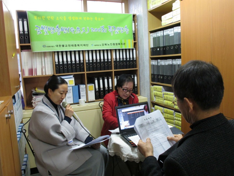 시립강북노인종합복지관에서는 금빛방송반 방송 200회를 맞이하여 복지관 내‧외 소식 및 유용한 정보전달의 매개체 역할을 수행하고 있는 방송반 활동을 축하하고, 청취자와 함께 나누는 자리를 마련함으로써 방송반원들의 자부심을 향상시킴은 물론 회원들의 관심을 유도하는 의미있는 시간이 되었습니다.