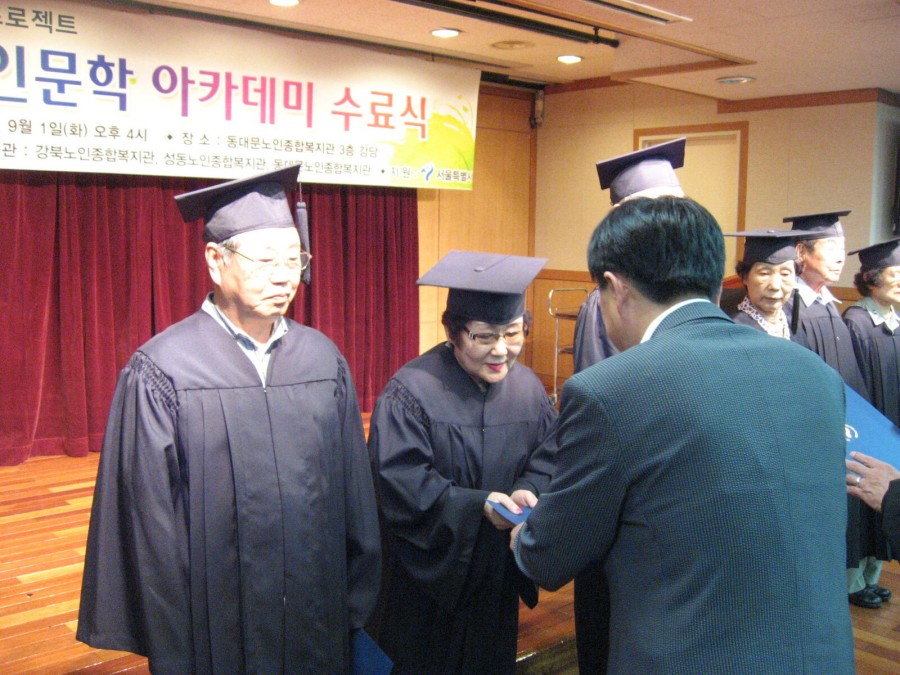 리에 모여 수료식 및 개근상 수여, 소감발표 및 기념사진을 촬영하는 시간