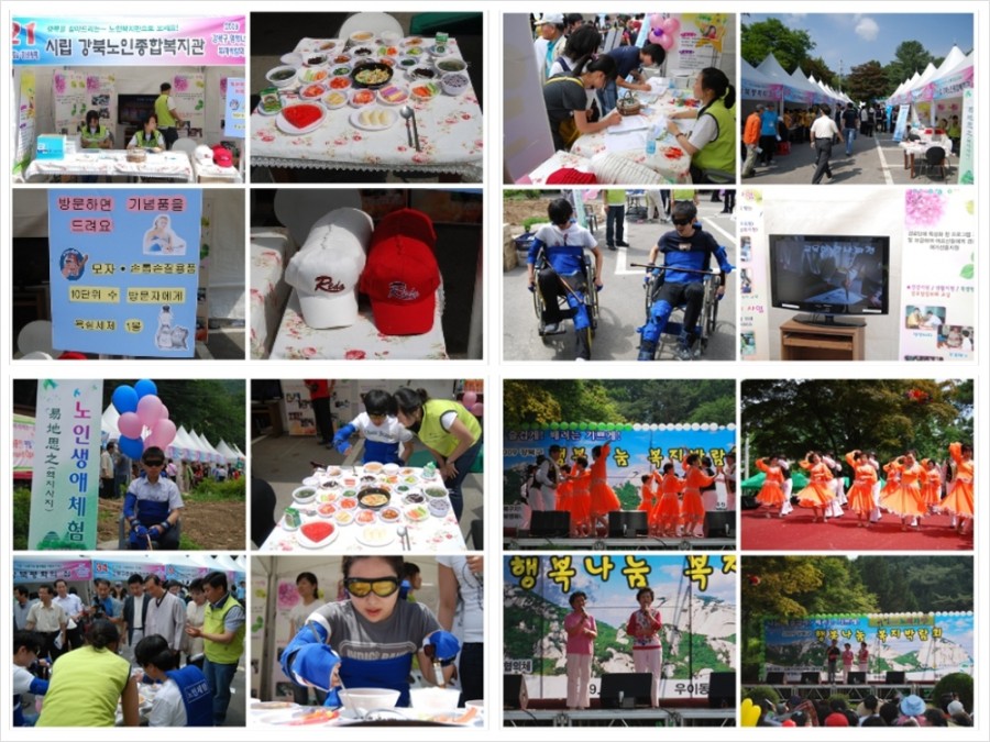 6월 13일 토요일, 오전 10시부터 오후 5시까지 강북구 우이동 그린파크 공원에서는 2009 강북구 행복나눔 복지박람회를 개최하였습니다. 강북구 내 보건, 복지, 고용, 주거, 문화, 관광, 생활체육, 평생교육 분야의 125개 기관,시설, 단체가 함께 하여 홍보, 체험, 먹거리장터, 다문화음식코너 등을 마련하였고 주민 약 10,000명이 방문하여 성공적인 행사를 진행할 수 있었습니다.