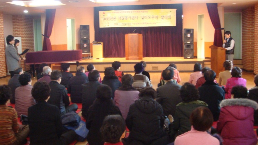 21c 노인자원봉사센터 구축을 위한 "실버도우미" 양성 파견사업 발대식이 지난 1월 20일 오후12시 3층 강당에서 진행되었습니다. 예술봉사단(한국무용, 포크댄스, 댄스스포츠), 건강봉사단(발맛사지), 등하교 봉사단(교통수)으로 구성된 실버도우미는 올해 3차년도 사업으로 어르신들의 역량과 자원봉사의 의지를 강화하고 다양한 분야에서 노년의 긍정적인 이미지를 제고할 계기가 될 것입니다. 실버도우미로 활동을 시작한 어르신들의 힘찬 도약을 기원합니다!