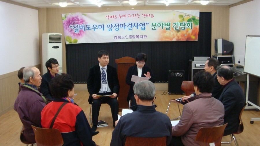 사회복지공동모금회에서 지원하는 외부공모사업 '21c 노인자원봉사센터 구축을 위한 실버도우미 양성 파견사업'에서는 현재 예술봉사단, 건강봉사단, 교통수봉사단이 활동하고 있습니다.