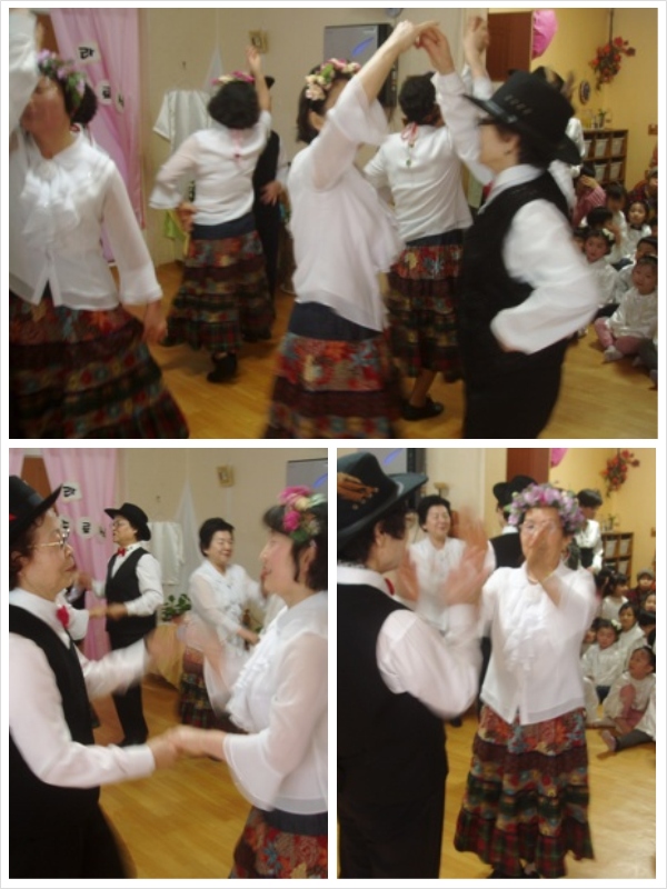 2월 25일 실버도우미 예술봉사단에서는 둥근나라 어린이집을 방문하여 포크댄스 공연을 선보여 주셨습니다. 예쁜 의상을 입고 포크댄스를 추는 어르신들을 보면서 어린이들의 눈에 건강하고 아름다운 어르신 공연문화를 가르쳐줄 수 있는 계기가 되었고 어르신들의 봉사활동의 만족감을 더하는 시간이었습니다.