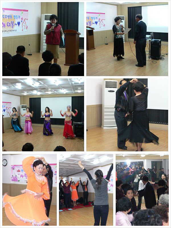 12월18일 오후 2시30분, 소강당에서는 지정평생학습관사업 사랑해여봉 종결식 및 댄스축제를 진행하였습니다. 관장님의 인사말, 동영상 감상, 배우자를 위한 상장 및 선물 전달식, 커플댄스 공연발표, 강사와 함께하는 댄스축제 순서로 진행되었으며 사랑해여봉 2기 어르신과 앞으로도 지속적 만남을 약속하는 시간이었습니다.