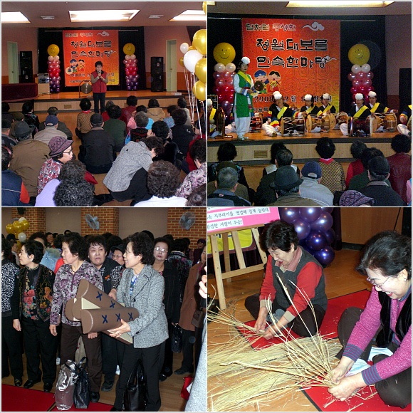 우리소리 공연, 대형윷놀이, 제기차기, 딱지치기, 투호놀이, 새끼줄꼬기경연 등 다양한 놀이에 많은 지역 어르신들이 참가하여 즐거운 한 때를 보내셨습니다.