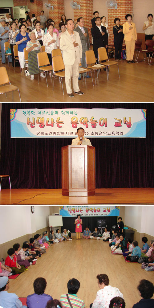 내용: 9월 17일 신명나는 음악놀이 교실 입학식이 진행되었습니다. 신명나는 음악놀이 교실은 한국유초등음악교육학회에 전문적인 강사진들과 연계하여 운영하게 되었습니다. 이번 입학식에서는 김현풍구청장님과 구청관계자분들이 함께 참석하셔서 자리를 빛내주셨습니다. 입학식에서는 구청장님인사말씀과 진행교수 소개, 프로그램 교육 안내 및 학생 선서하는 시간을 가졌습니다. 소강당에서 프로그램이 진행될 예정입니다.