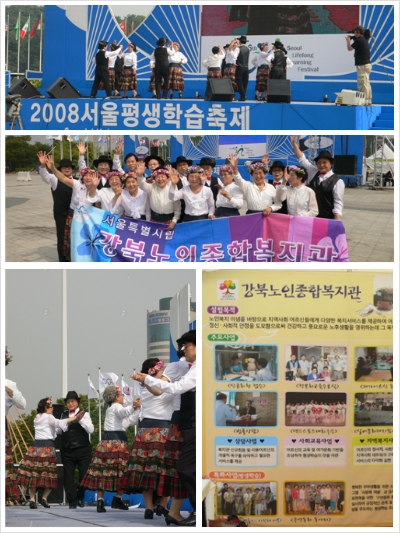 지난 10월 3일 올림픽공원에서 진행한 서울평생학습축제에 포크댄스 어르신 16분이 참가하여 공연을 선보이셨습니다. 24개팀 중 두번째 순서로 프로그래시브 반 댄스와 둘만의 세계 음악에 맞추어 경쾌하고 아름다운 포크댄스를 추셨고 공연후에도 다른 참가팀을 응원하며 멋진 페어플레이 정신을 발휘하였습니다.