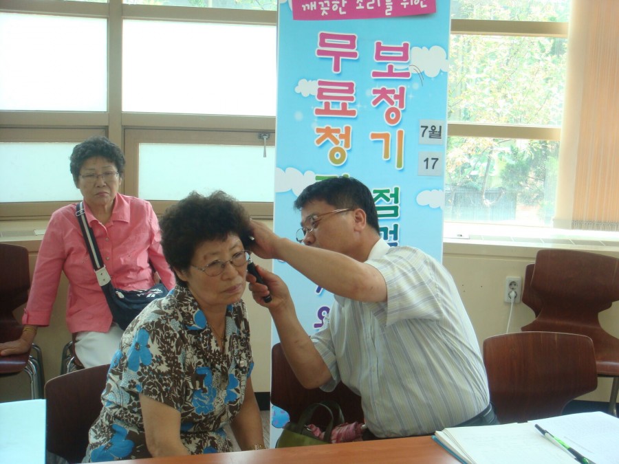 7월 17일 복지관 소회의실에서 무료청력검사와 보청기 점검이 실시되었습니다. 벨톤보청기 청능사께서 어르신 8분께 상담과 검사를 해드렸습니다.  검사를 원하시는 어르신분들은 진료실로 오셔서 예약하시면 됩니다.