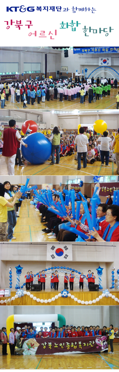 kt&g복지재단의 지원으로 강북구 7개 사회복지기관이 함께 강북구 어르신 화합 한마당을 진행하였습니다.