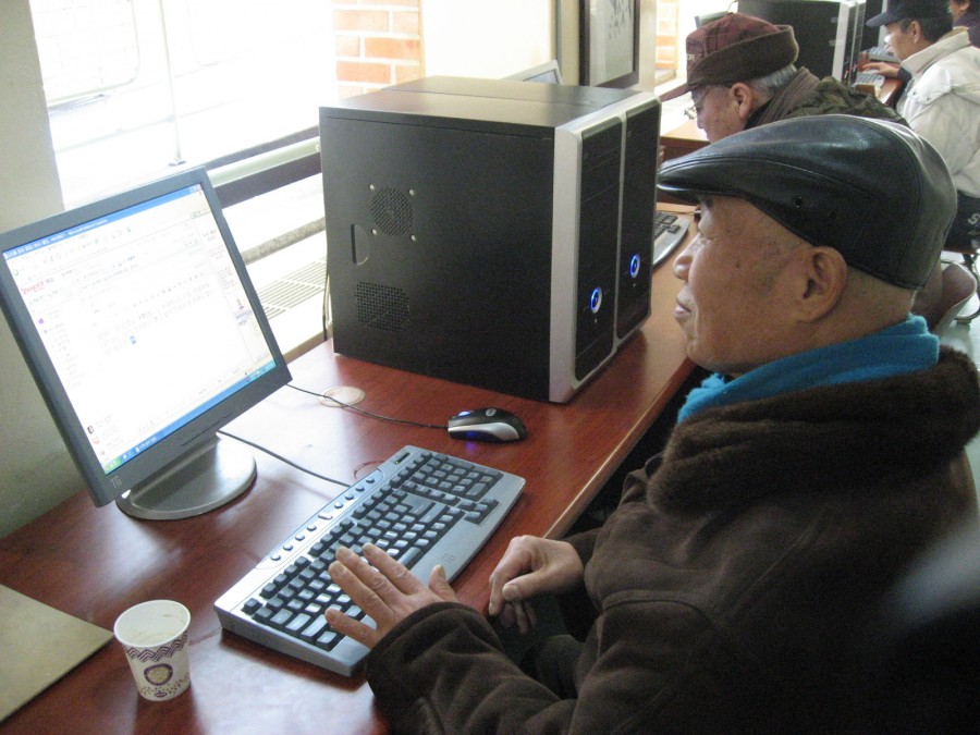 서로에게 컴퓨터를 가르쳐 주시는 어르신들~