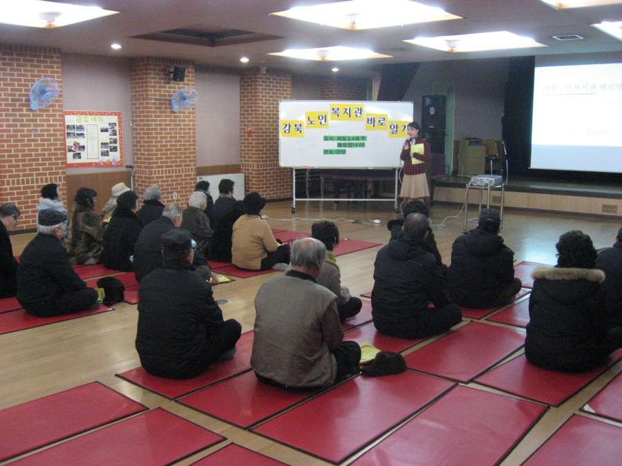 매월 2, 4째주에 강북노인복지관바로알기 프로그램이 진행되오니 관심있는 분들은 많은 참석바랍니다.