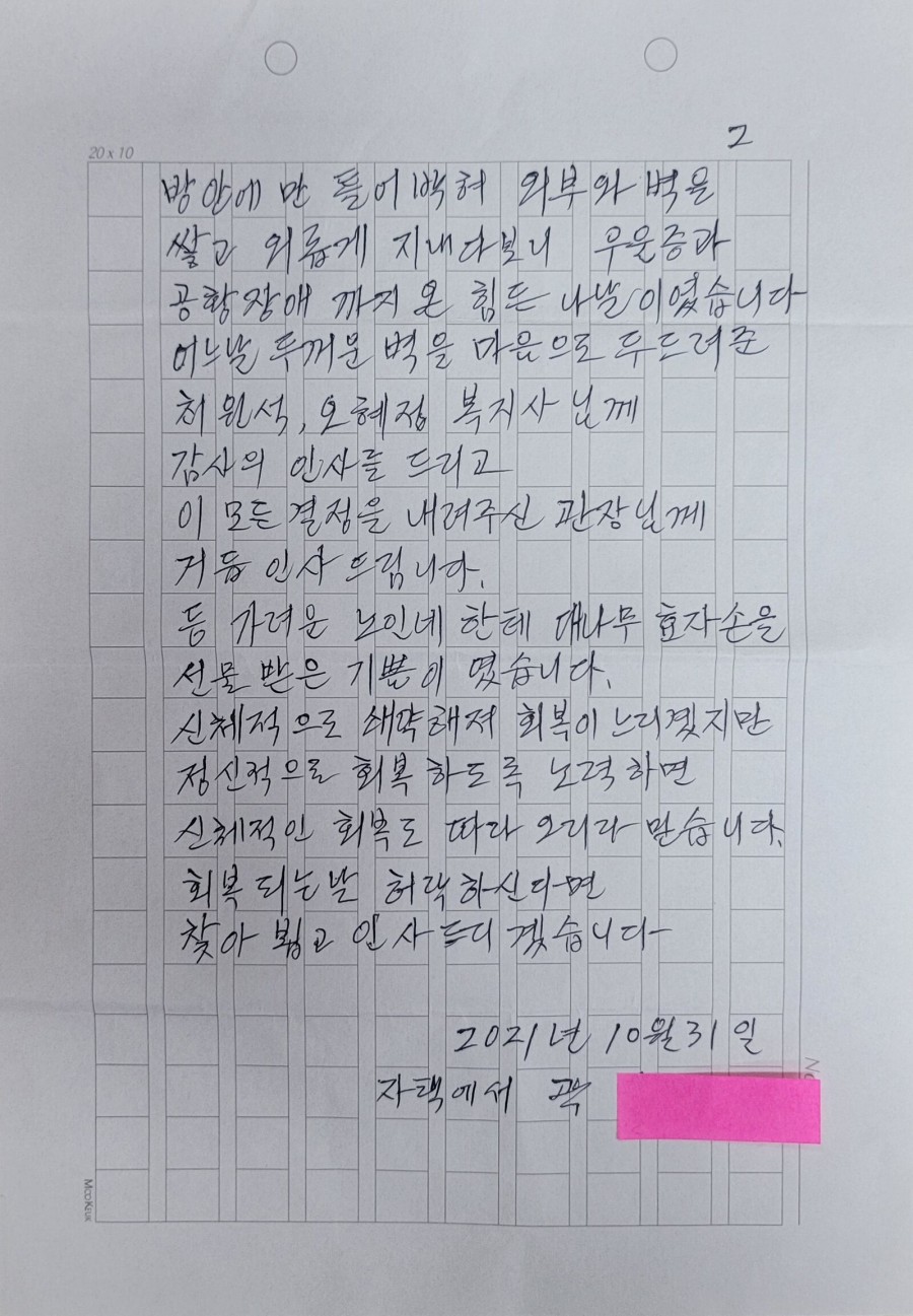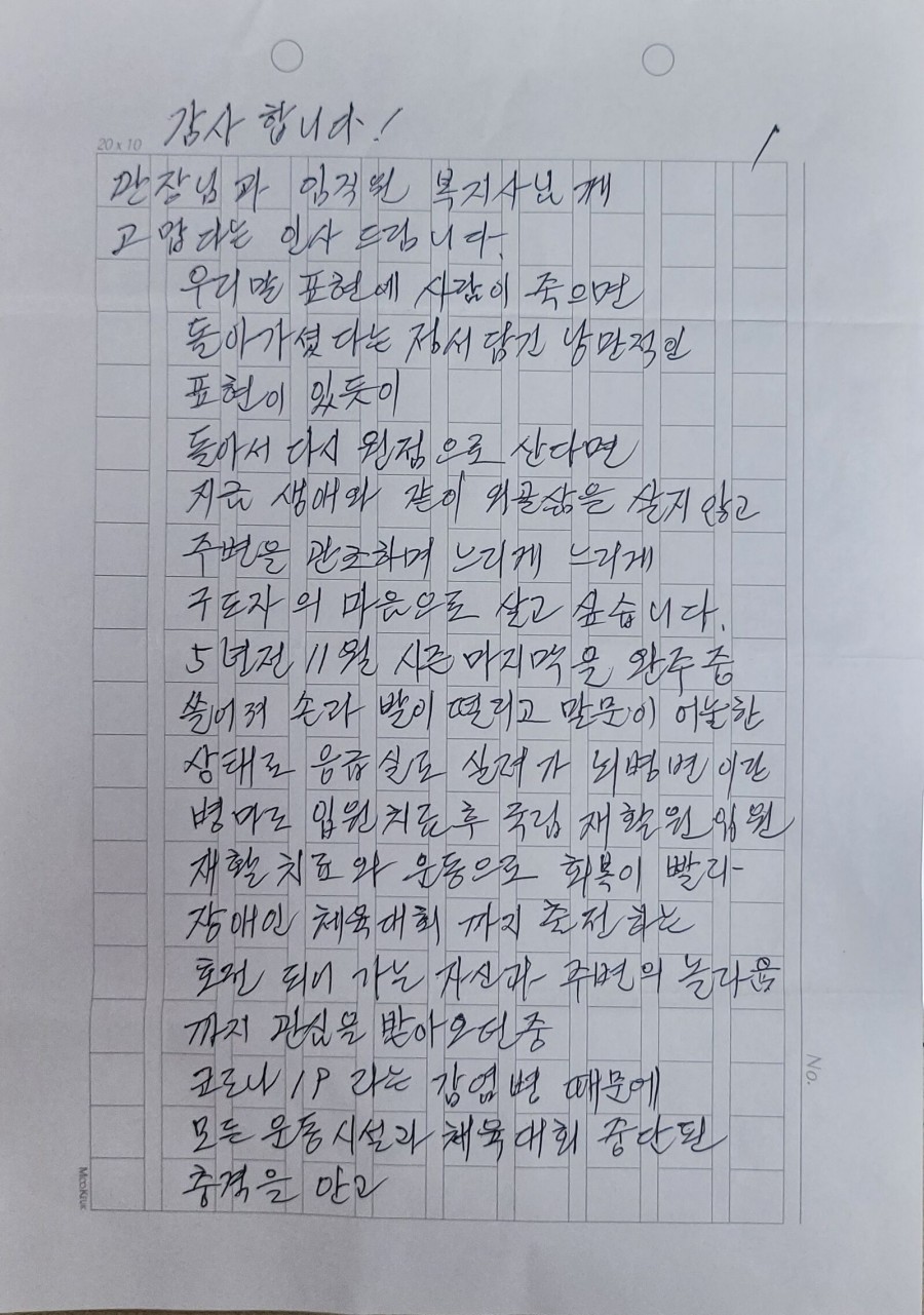 신규 노인맞춤서비스 대상자이신 곽ㅇㅇ어르신께서 뇌병변 이후 세상과 단절한 채