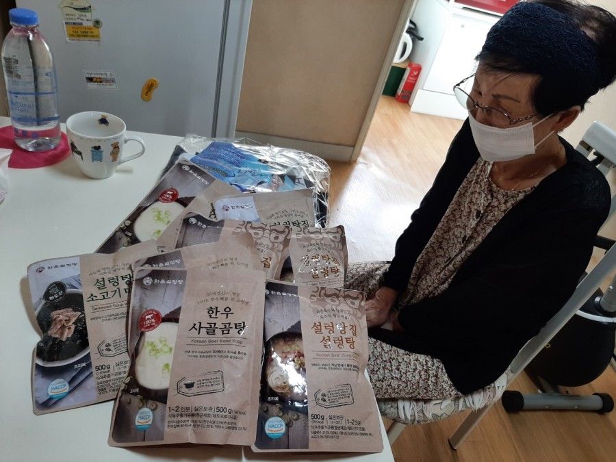 이번 무더위 극복 키트를 전달받은 어르신들은 '코로나19로 식사를 챙기기 어려웠는데 간편식을 지원해 주어 감사하다.', '오랜만에 보양식을 먹게 되어 기쁘다.'며 인사말을 전하였습니다.