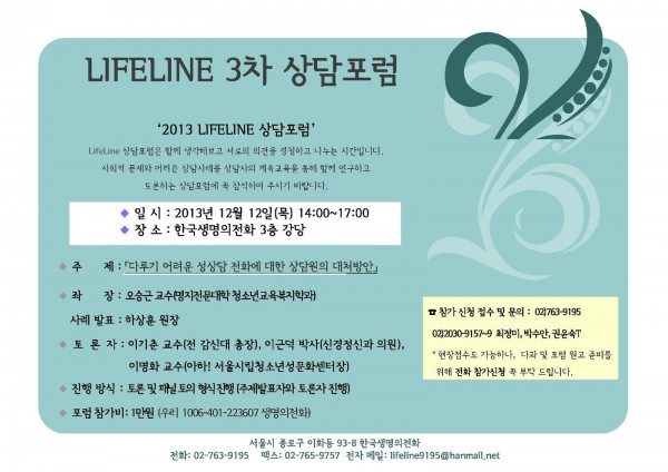 접수 및 문의 : http://www.lifeline.or.kr/ - 공지사항