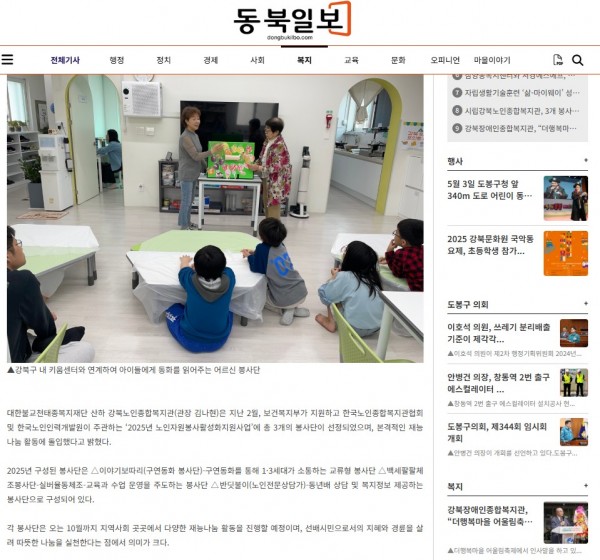 [2025.04.22] 시립강북노인종합복지관, 3개 봉사단 재능나눔 활동 돌입 - 동북일보