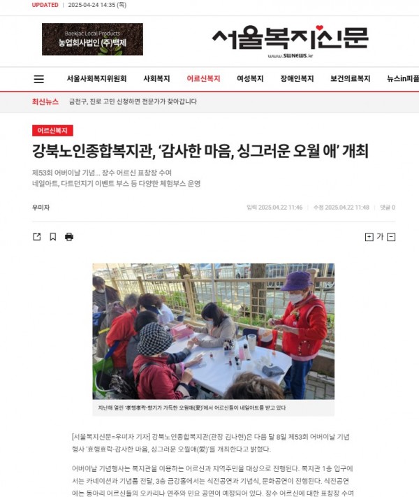 [2025.04.22] 강북노인종합복지관, ‘감사한 마음, 싱그러운 오월 애’ 개최 - 서울복지신문
